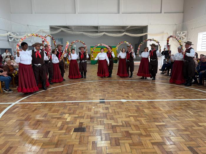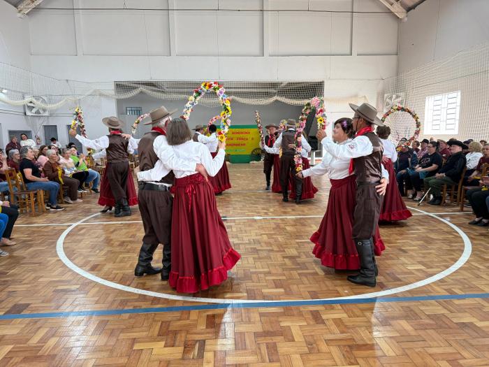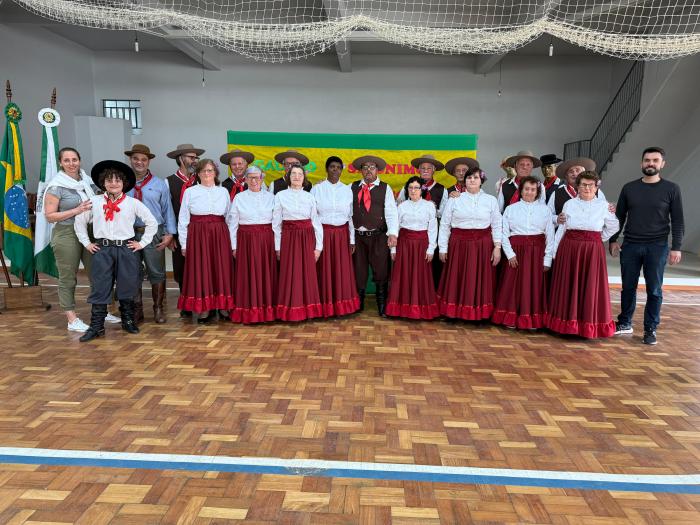 O grupo anfitrião “Vida Ativa” recebeu o grupo “Elos Dançantes”, do município de Coqueiro Baixo. Os participantes, acompanhados da secretária de Assistência Social, Veridiane Bertol; da coordenadora do CRAS, Tatiane Ongaratto; do professor, Maurício Delazeri; e dos gaiteiros Osmar da Silva e Samuel Vian, promoveram um espetáculo de dança gauchesca, em alusão ao mês Farroupilha, e também de humor teatralizando a música italiana “La Bella Polenta”.