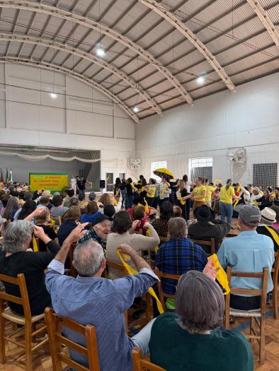 Na quinta-feira, 25, o tradicional evento promovido pela Secretaria Municipal de Assistência Social, reuniu 230 idosos no Salão Paroquial para um momento com falas, música e dança.