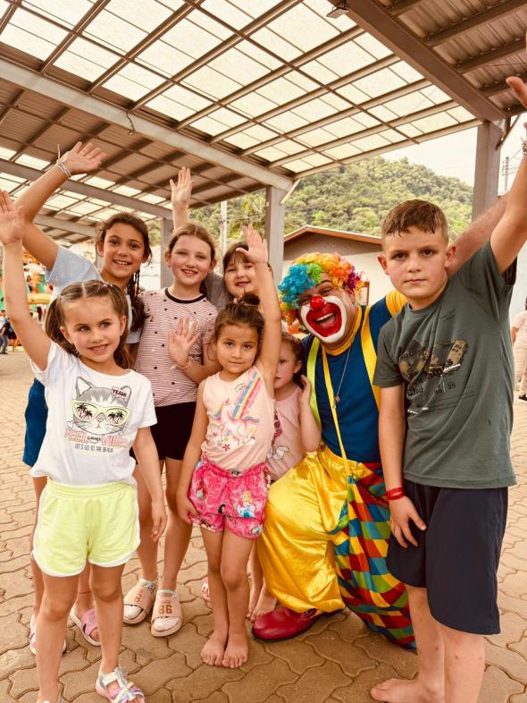 Cachorro-quente, pipoca e refrigerante foram distribuídos aos pequenos, que também dançaram muito ao lado do palhaço Teta, responsável pelo agito da tarde.