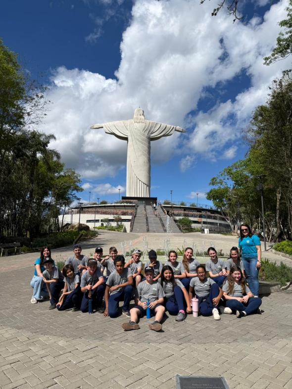 Cerca de 140 alunos, acompanhados de professores, monitores e da equipe da Secretaria de Educação, conheceram o maior monumento de Cristo do mundo.