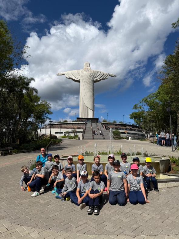 Em comemoração à Semana da Criança, os alunos da EMEI Amiguinhos da Natureza e da EMEF Santo Antônio conheceram o Complexo do Cristo Protetor, ponto turístico localizado no município de Encantado.
