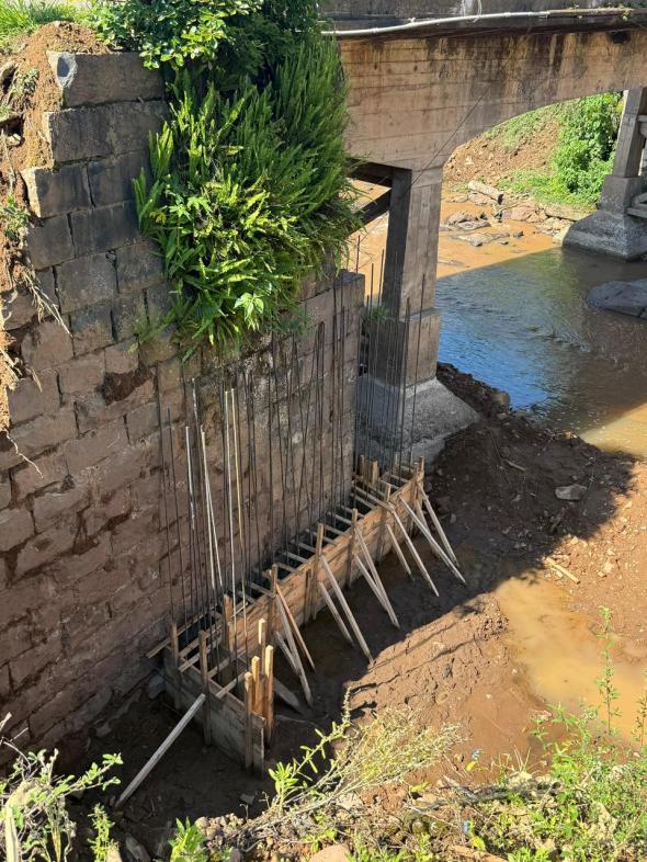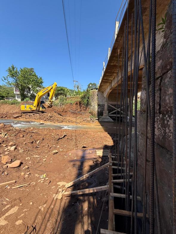 A estrutura foi danificada devido à catástrofe climática do ano passado e está sendo reconstruída com recursos da Defesa Civil Nacional e contrapartida da Administração Municipal.