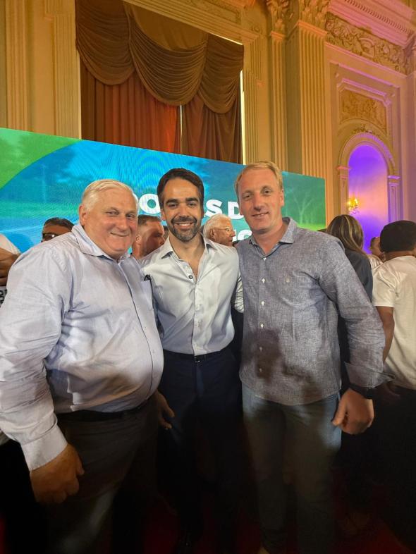 Na quarta-feira, 3, o prefeito Carlos Luiz Fraporti e o vice Adalberto Dalla Vecchia participaram, no Palácio Piratini, da solenidade que marcou o anúncio oficial de parte do recurso para a pavimentação do trecho que liga ambos os municípios.