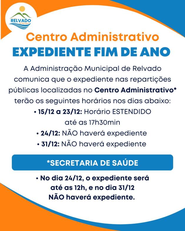 Prefeitura de Relvado divulga expediente para o fim de ano