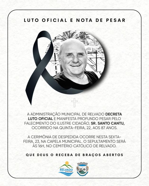 ▪️ A cerimônia de despedida está sendo realizada nesta sexta-feira, 23, na Capela Municipal. O sepultamento será às 16h, no Cemitério Católico de Relvado.