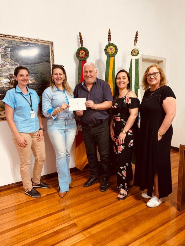 Elas representam a Associação dos Municípios de Turismo do Vale do Taquari (Amturvales) e estiveram reunidas com o prefeito Carlos Luiz Fraporti, com a presidente da Associação Caminho da Fé, Odete Araldi, e com a secretária de Administração, Francieli Marchetti, na terça-feira, 27.