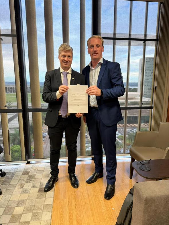 Por fim, o vice-prefeito reuniu-se com o deputado Marcel van Hattem, o convidando para a inauguração do Caminho da Fé e Devoção, ato que ocorrerá no próximo dia 21.