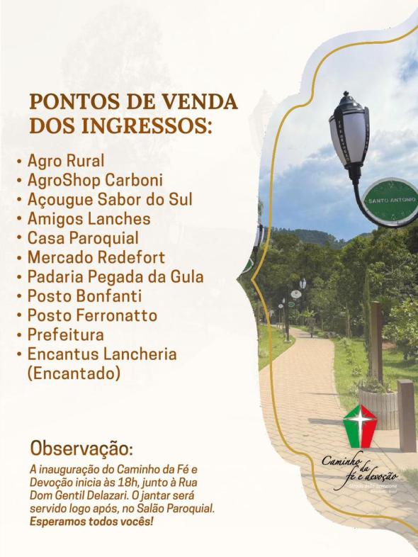 Após, todos estão convidados para participar de um jantar de confraternização (espeto corrido) e show do Grupo Passiones no Salão Paroquial.