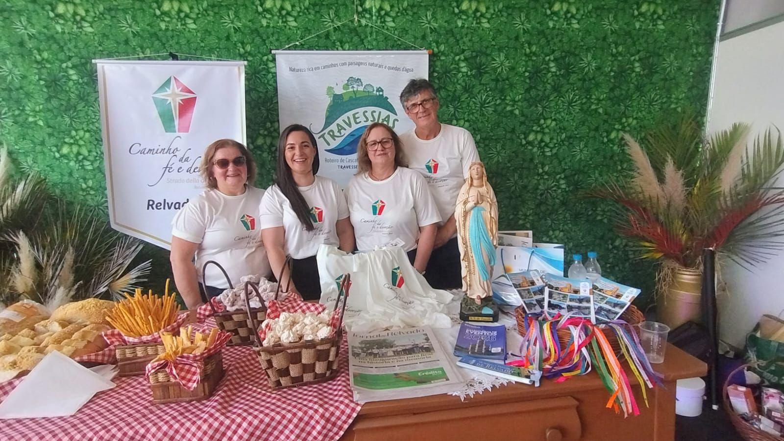 Representaram o município e o atrativo turístico a presidente da Associação Caminho da Fé, Odete Araldi, e demais integrantes Francieli Marchetti, Sidi Pretto e Sandra Isabel Cemin Perin.