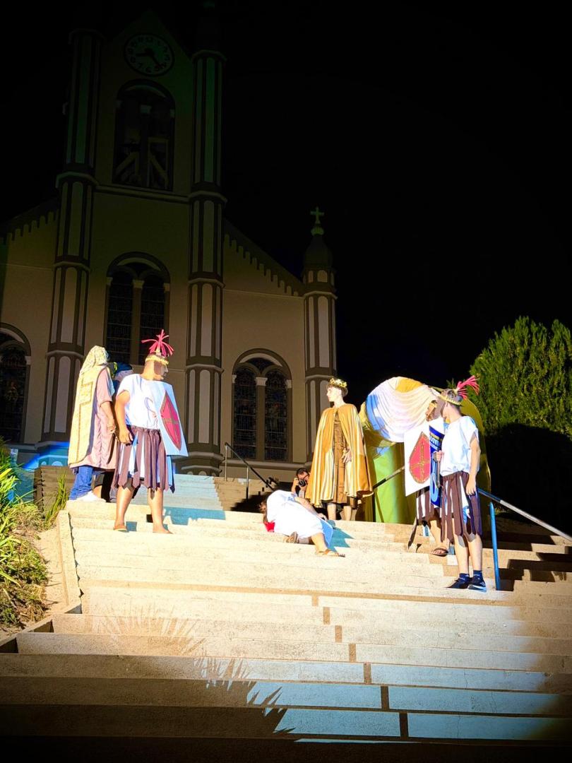 Tendo como cenário o imponente morro e escadarias da Igreja Matriz Santo Antônio, cerca de 200 pessoas, entre atores e coordenação, entregaram à plateia um espetáculo digno de aplausos e repleto de emoção e também reflexão.